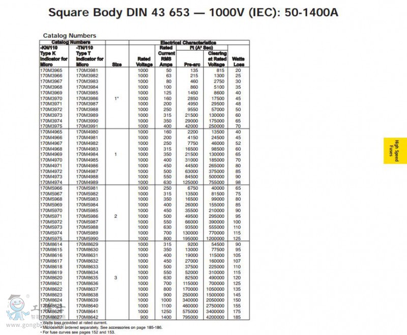 巴斯曼保險(xiǎn)絲170M6248熔斷器 電流1000A 電壓 1250Vac/1300Vac |