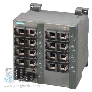 SCALANCE X216,受管理的 IE 交換機,16個 10/100 Mbit/s RJ45 端口,LED 診斷, 錯誤信號觸點含 設置按鈕,冗余 電源,PROFINET 輸入輸出設備,網絡管理, 集成冗余管理器, 包括電子手冊在 CD-ROM,可選配 C-PLUG