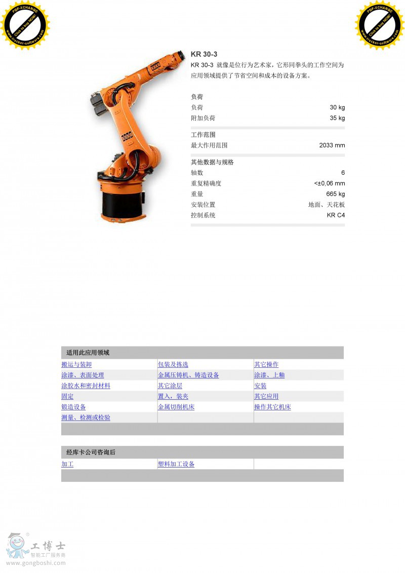 庫卡kuka機器人 KR 30-3負載30KG 臂展 2033mm