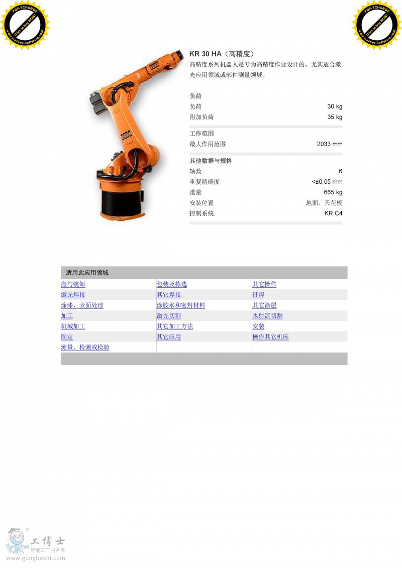 庫卡kuka機器人KR 30 HA(高精度)負載30KG 臂展 2033mm