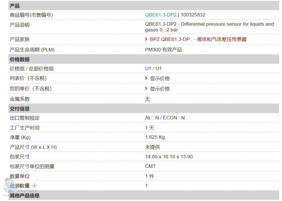 西門子壓差傳感器 QBE61.3-DP2 傳感器價格