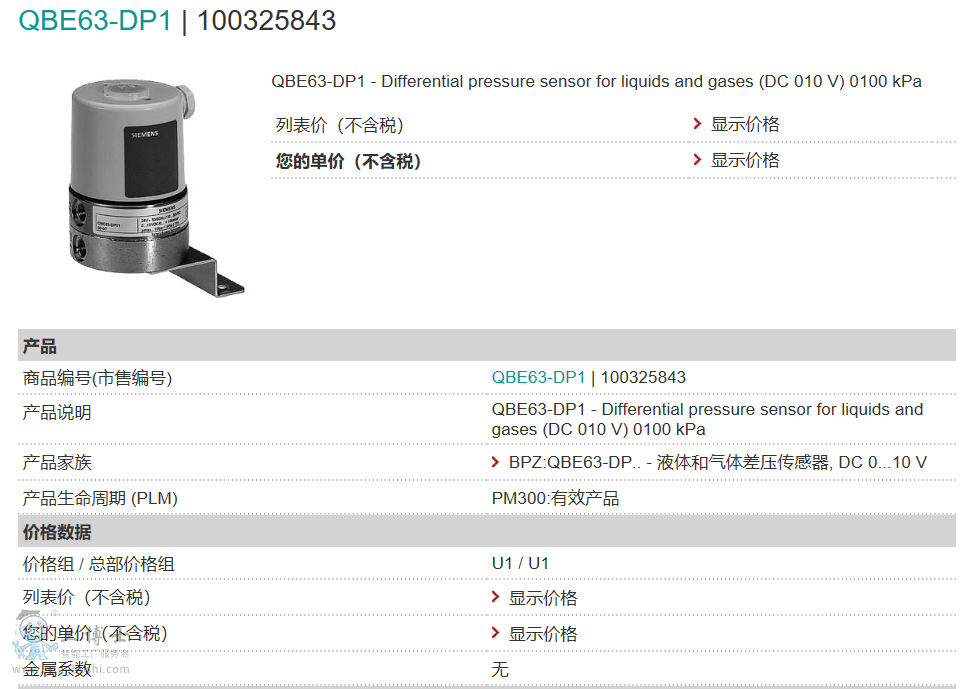 西門子壓差傳感器QBE63-DP1 傳感器價格