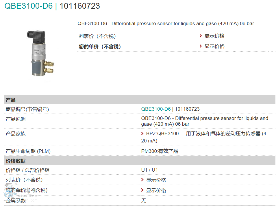 西門子壓差傳感器QBE3100-D6 傳感器價格