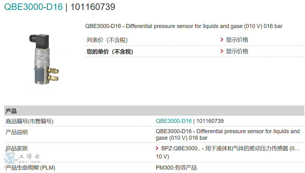 西門子壓差傳感器QBE3000-D16傳感器價格