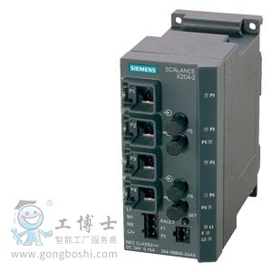 SCALANCE X204-2,受管理的 IE 交換機,4個 10/100 Mbit/s RJ45 端口,2個 100 Mbit/s 多模式 BFOC,LED 診斷, 錯誤信號觸點含 設置按鈕,冗余 電源,PROFINET 輸入輸出設備,網絡管理; 集成冗余管理器, 包括電子手冊在 CD-ROM,可選配 C-PLUG