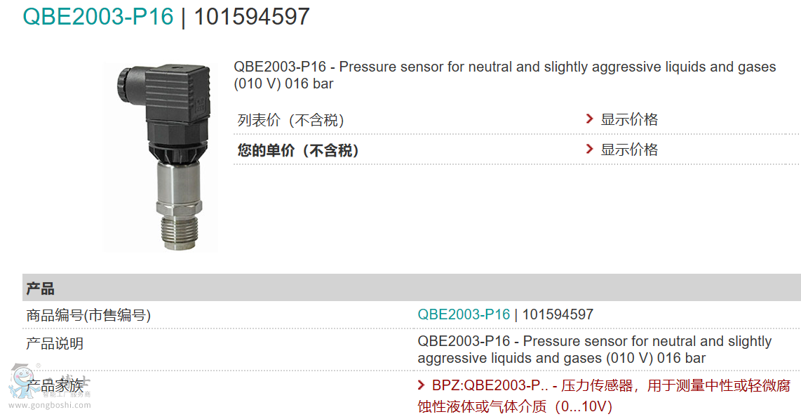 名稱: 壓力傳感器,用于測量中性或輕微腐蝕性液體或氣體介質