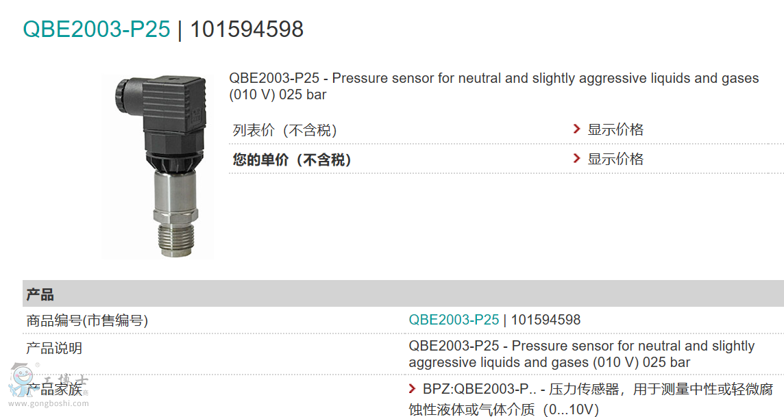 名稱: 壓力傳感器,用于測量中性或輕微腐蝕性液體或氣體介質