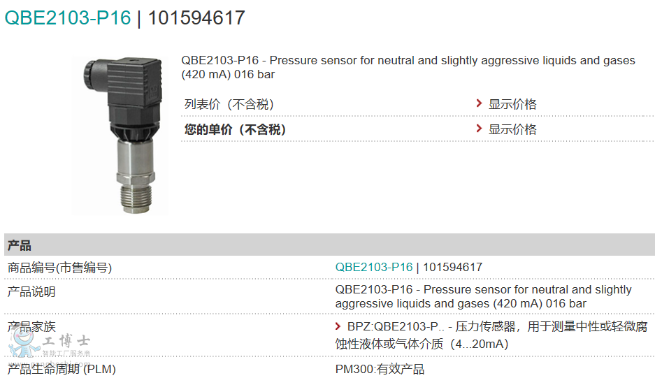 西門子壓力傳感器QBE2103-P16傳感器價格