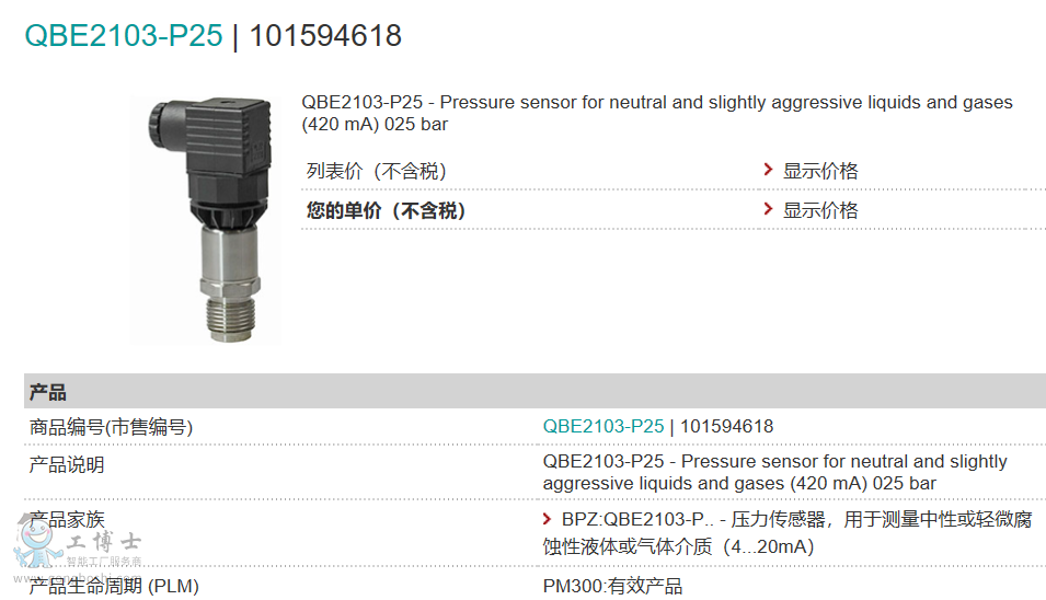 西門子壓力傳感器QBE2103-P25傳感器價格