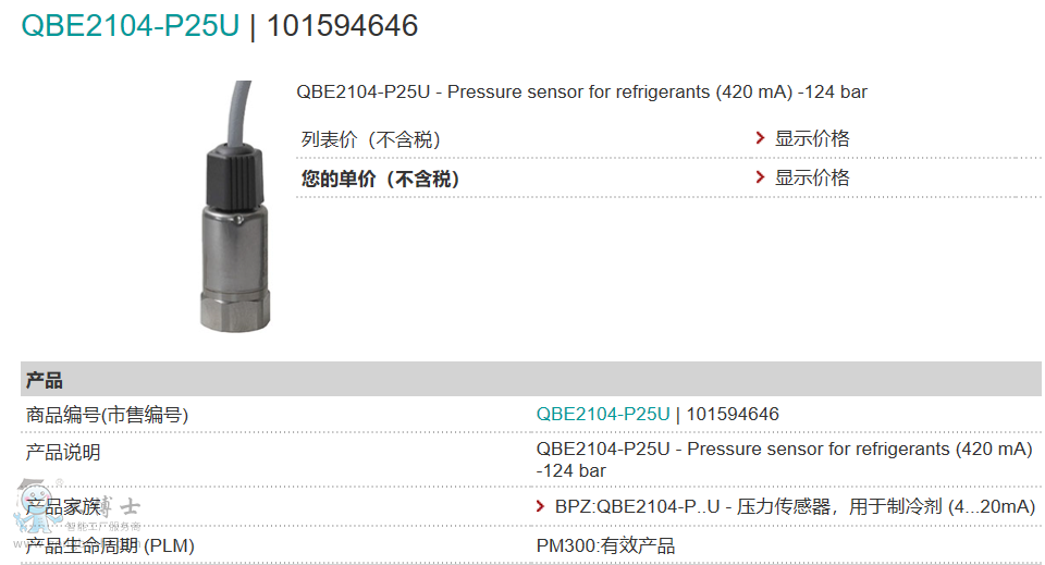 西門子壓力傳感器QBE2104-P25U傳感器價格