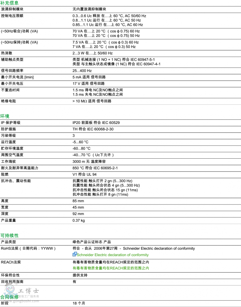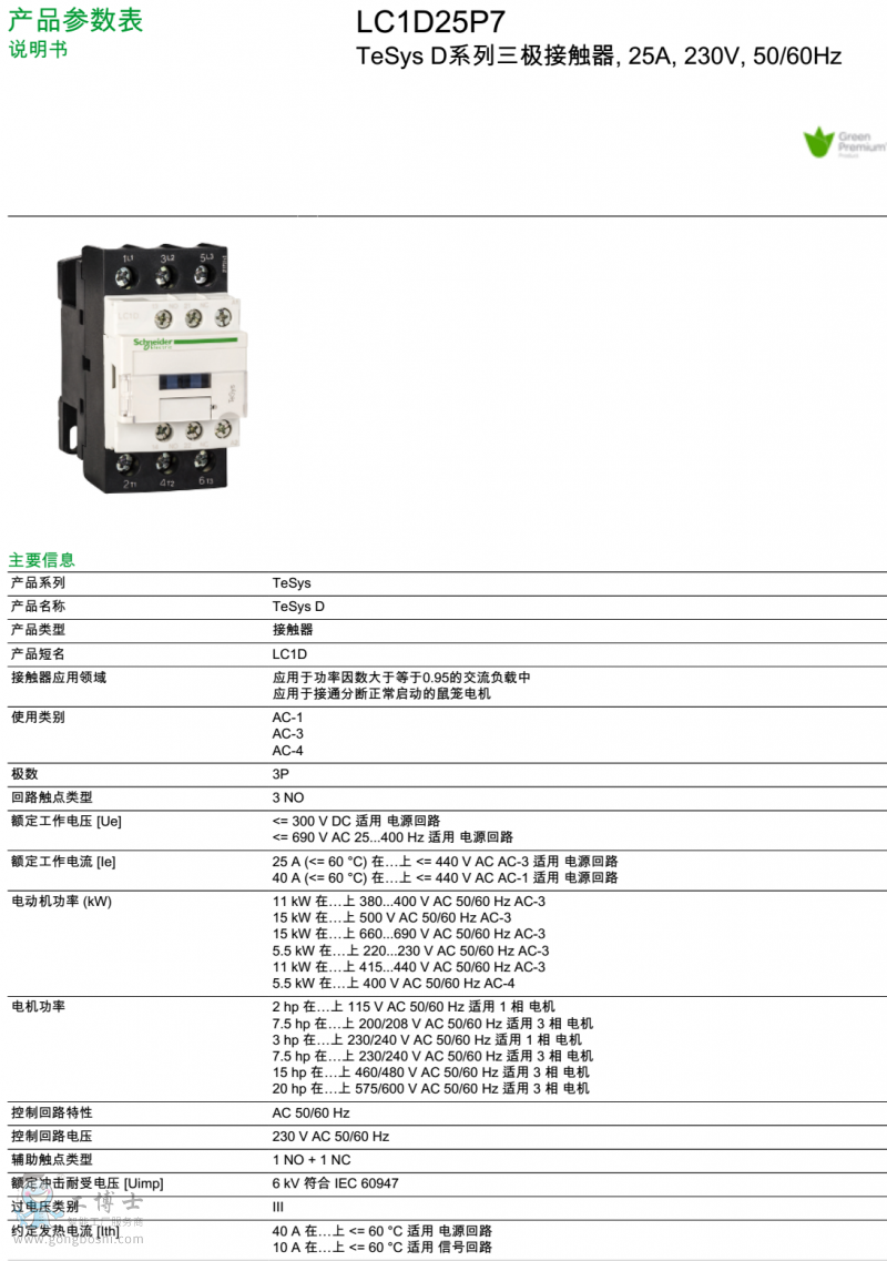 施耐德/Schneider 三極接觸器 LC1D25P7 25A 230V 50/60HZ