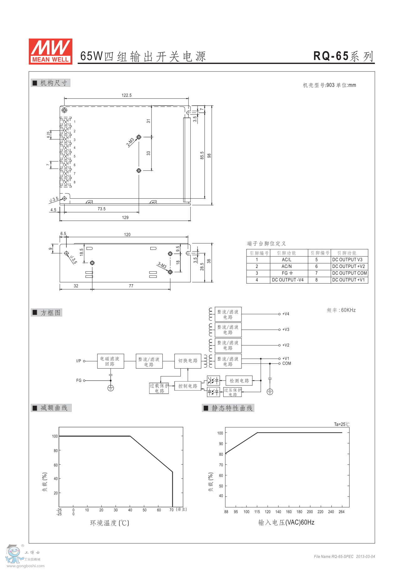 明緯RQ-65D 65W四組輸出開(kāi)關(guān)電源 G3系列