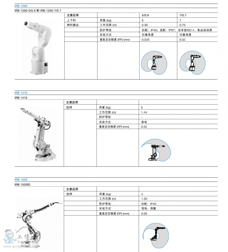 ABB機器人IRB1200-7/0.7負載7KG臂展0.9M緊湊柜主要應用:上下料、物料搬運