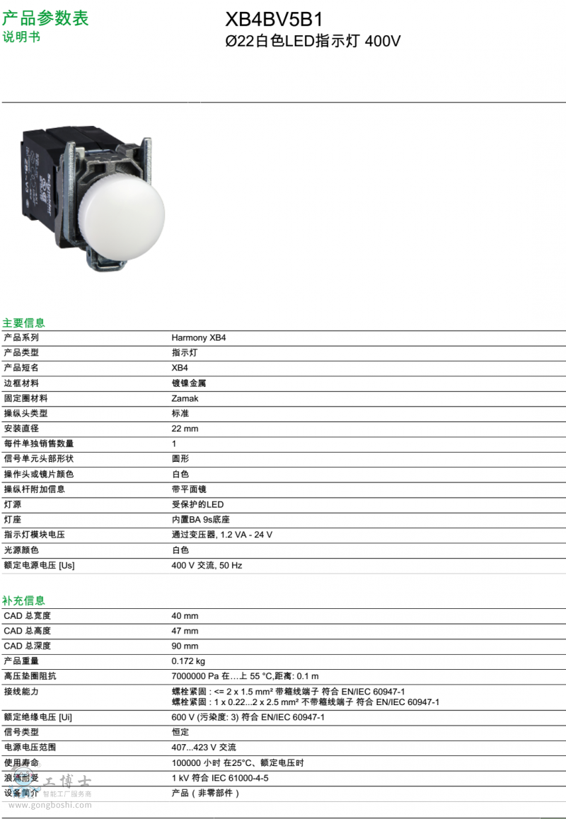 XB4BV5B1 指示燈 施耐德/Schneider Ø22 白色LED 400V