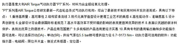 意大利進口AT(AIRTORQUE)氣動單作用執行器 操作介質: