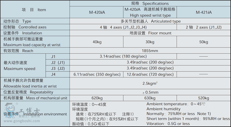 ·M一420A/M一42]iA是由搭載了多種智能化功能的*新式的高性能控制器R-J3iC控制的。