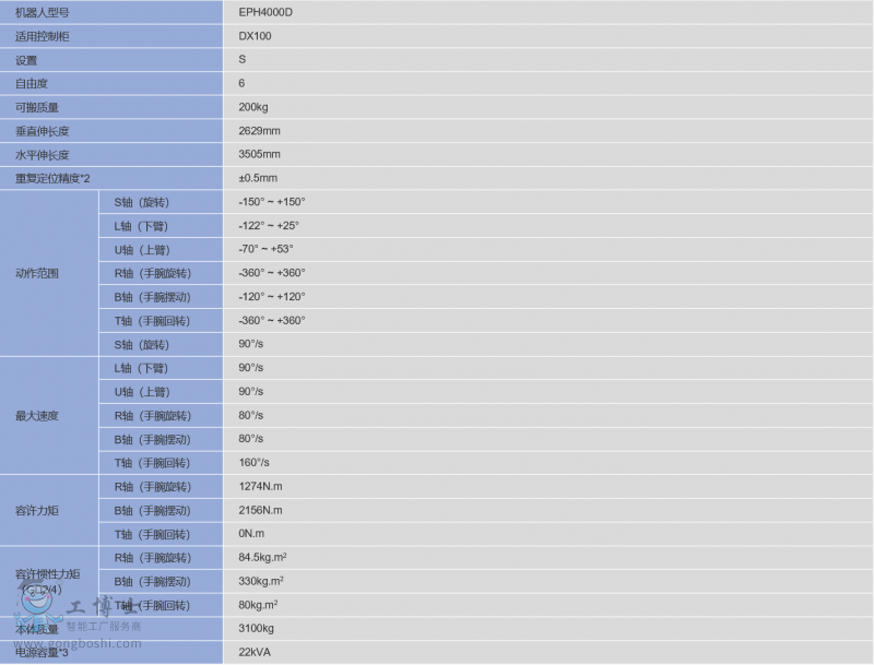 安川機器人EP系列-EP4000D 6軸200Kg 搬運