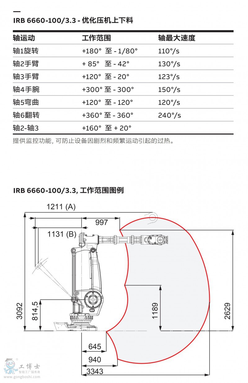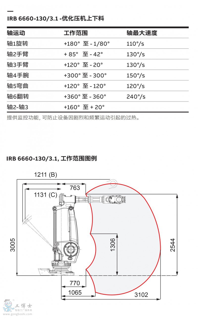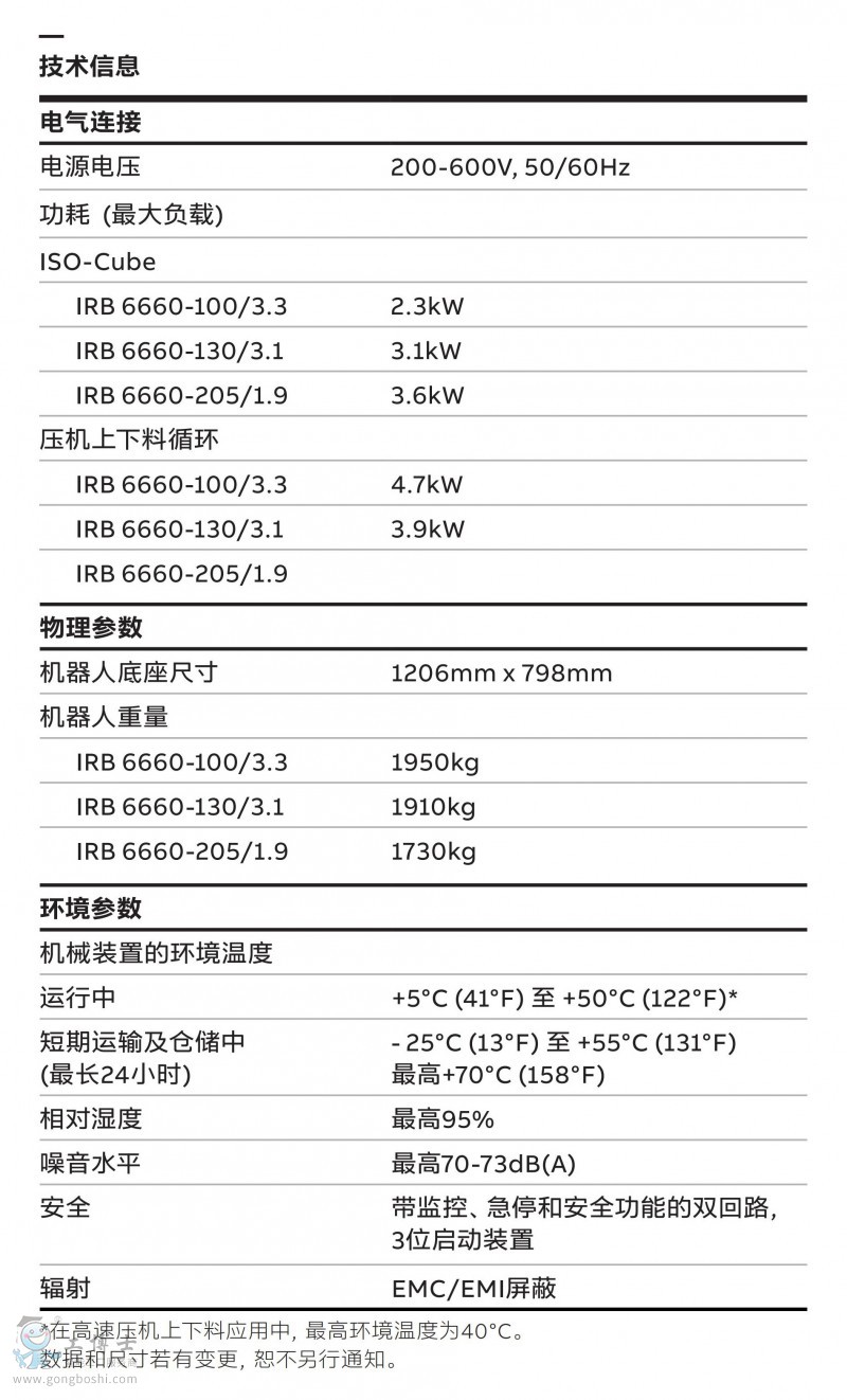 IRB 6660- 130/3. ,負(fù)載130KG,臂展3000mm,優(yōu)化壓機(jī)上下料應(yīng)用ABB機(jī)器人