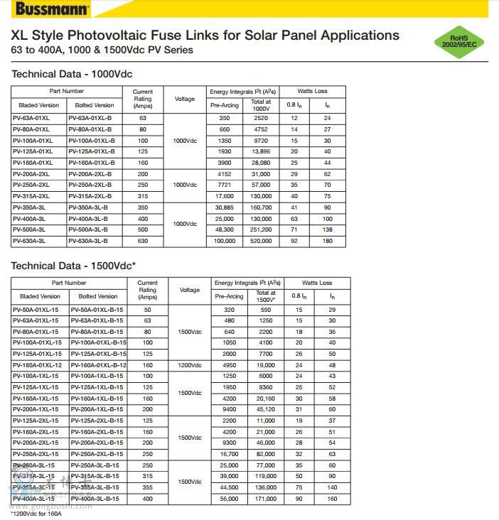 巴斯曼光伏熔斷器 PV-125A-01XL-B |
