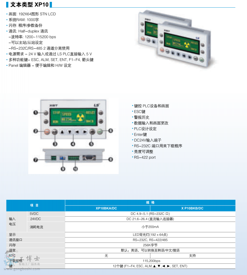 LS產電HMI人機界面XP系列文本顯示器XP10BKA/DC