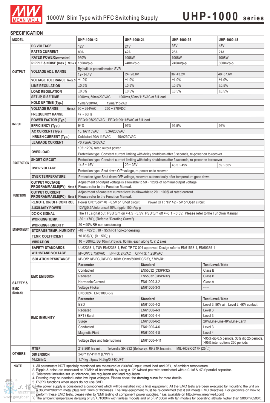 臺灣明緯UHP-1000-24系列1000W PFC開關電源質保3年 |