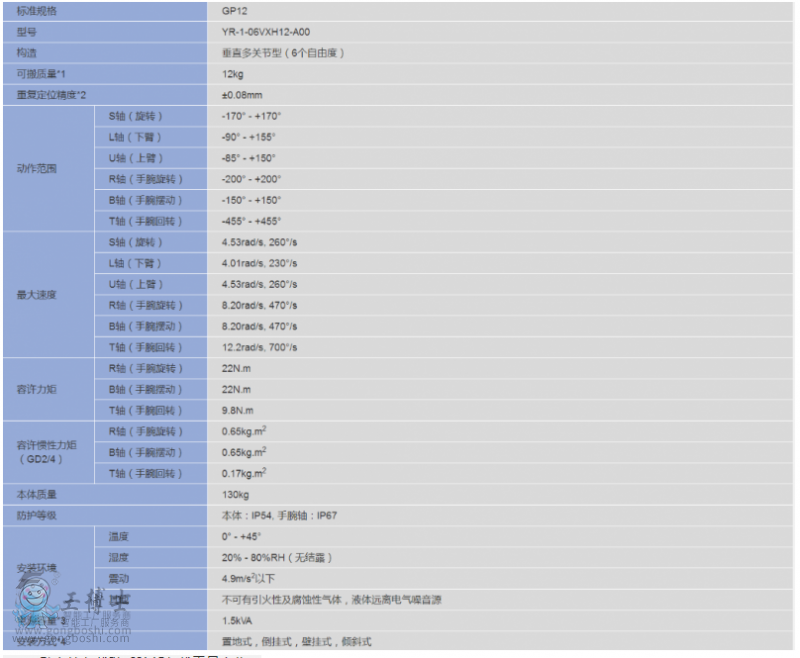 *4:壁掛式,傾斜式安裝時,S軸的動作會有限制。(注)本表是以SI單位系為記載。