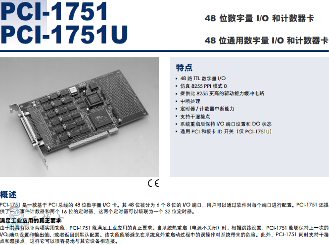 品牌:ADVANTECH/研華          型號:  PCI-1751      類型:數字量輸入/輸出卡48位PCI總線