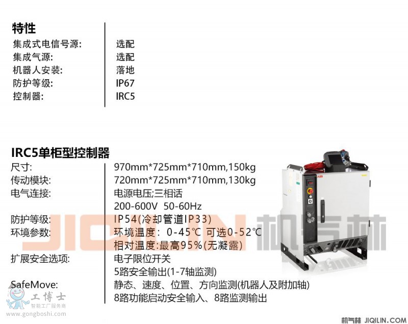 機器人本體堅固,配備快速**的IRC5控制器,可有效縮短工作周期,提高生產率。