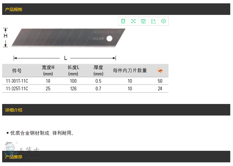 史丹利STANLEY手工具 QuickPoint美工刀刀片 11-301T-11C