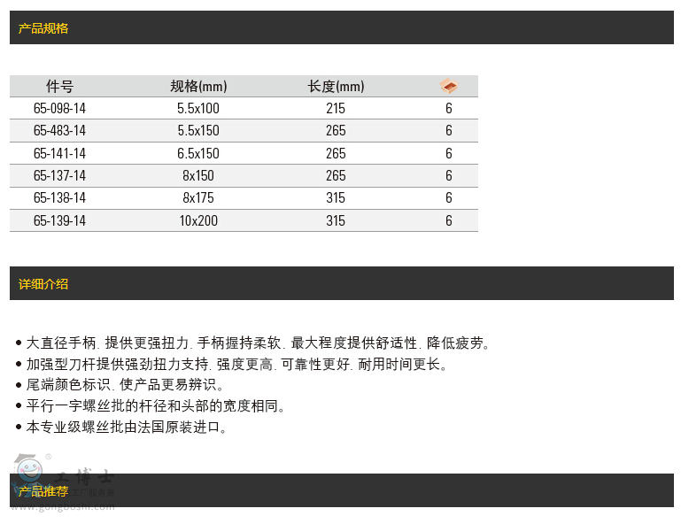 史丹利STANLEY手工具 三色柄一字螺絲批 65-006-14 |