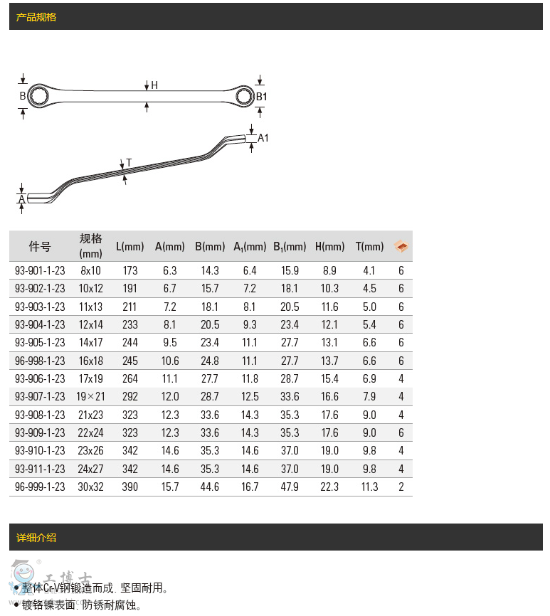 史丹利STANLEY手工具 公制精拋光45°角雙梅花扳手 93-905-1-23