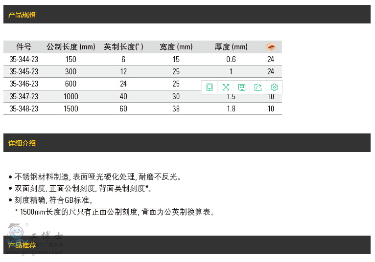 史丹利STANLEY手工具 不銹鋼直尺300mm 35-345-23