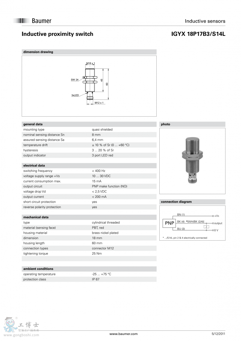 Baumer堡盟電感式接近開關IGYX 18P17B3S14L開增值票 |