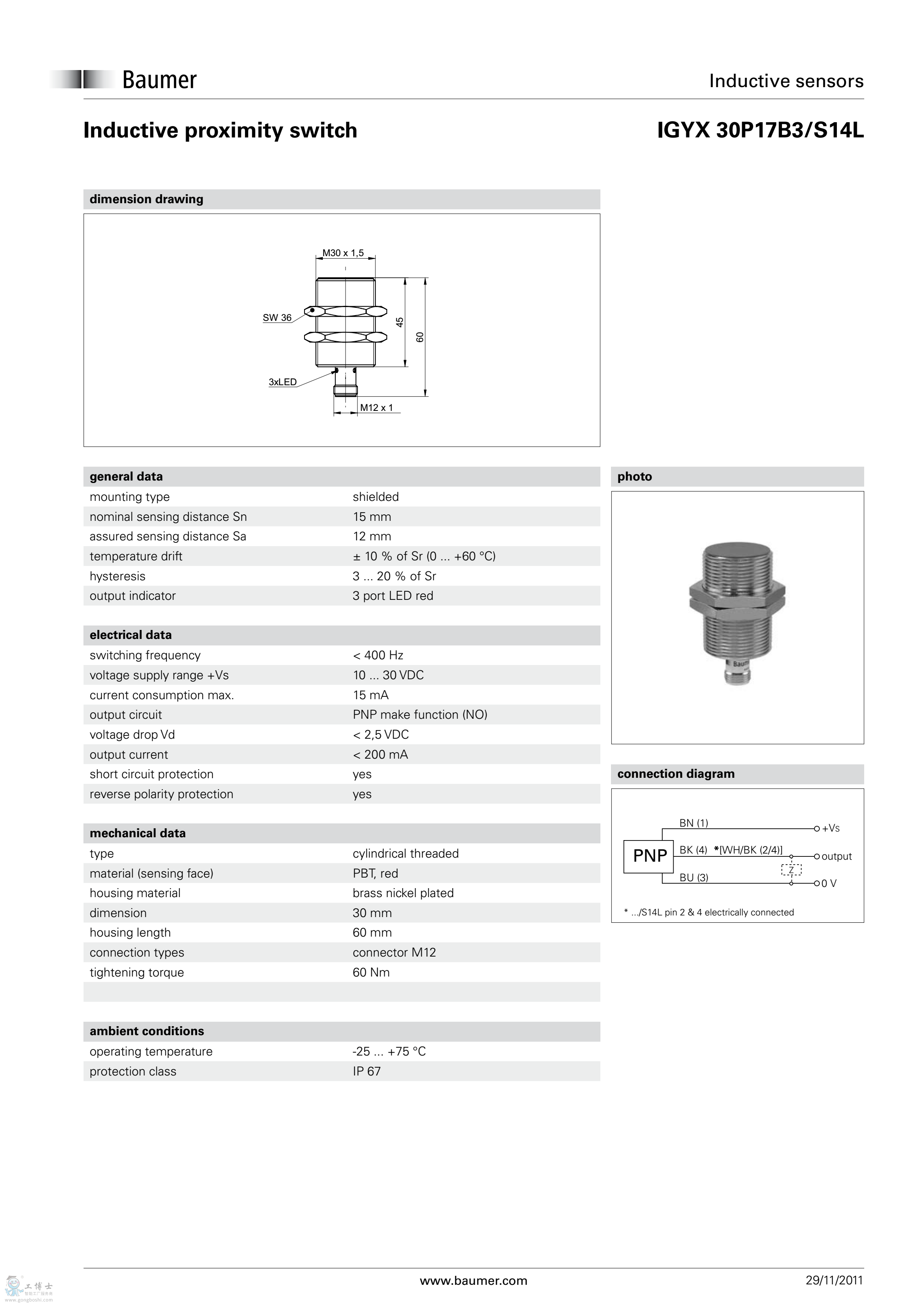 Baumer堡盟電感式接近開關(guān)IGYX 30P17B3/S14L開增值票現(xiàn)貨 |
