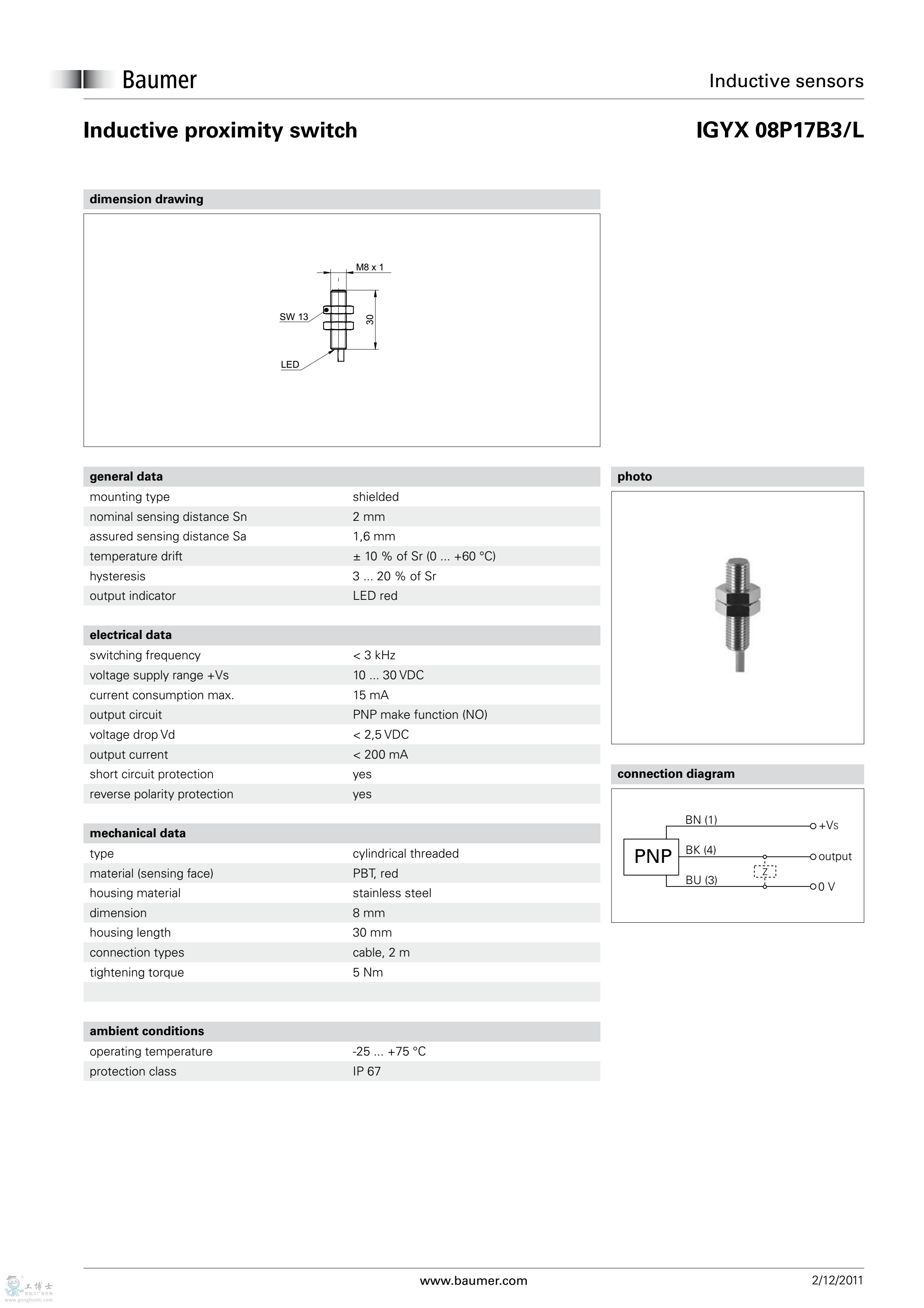 Baumer堡盟電感式接近開關(guān)IGYX 08P17B3/L開增值票傳感器現(xiàn)貨 |