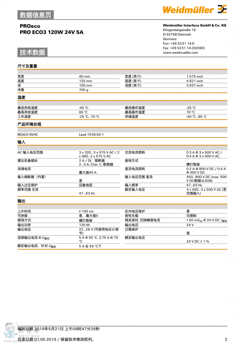 魏德米勒weidmulle開關(guān)電源PRO ECO3 240W 24V 5A三相1469530000