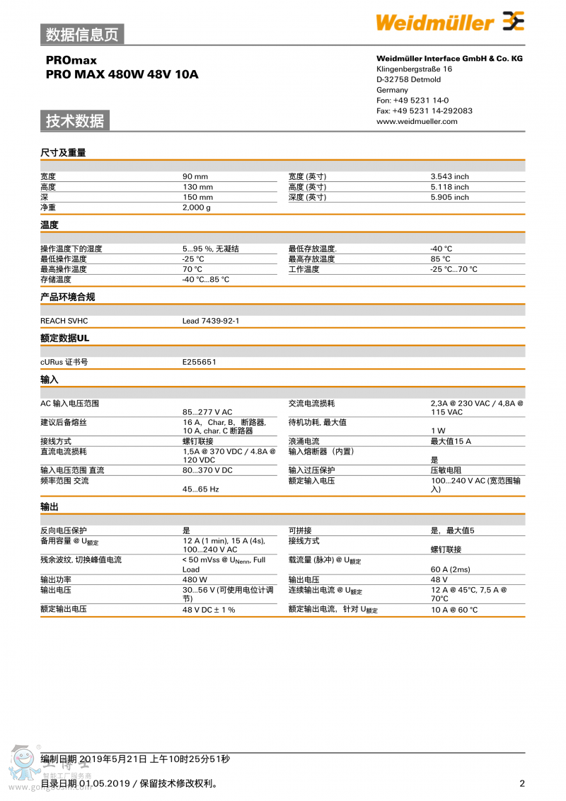 魏德米勒weidmulle開關(guān)電源PRO MAX 480W 48V 10A單相1478250000