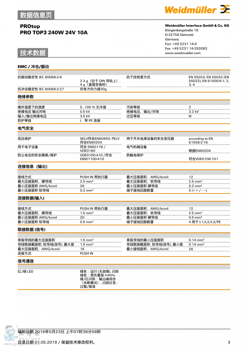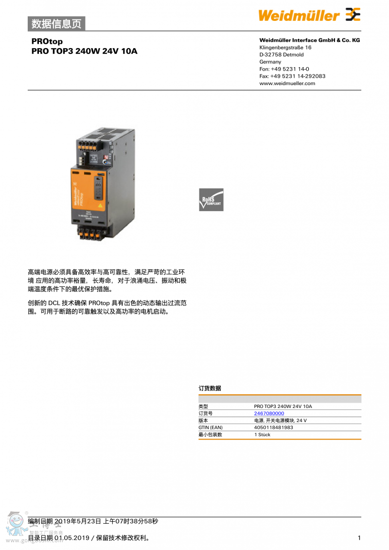 魏德米勒weidmulle電源PRO TOP3 240W 24V 10A三相2467080000