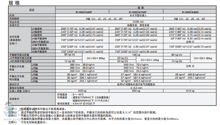 FANUC Robot R-1000iA是可搬運質(zhì)量為80~100kg 的小型高速機器人。它具有緊湊的機器人結(jié)構(gòu)和優(yōu)越的動作性能,能夠?qū)?yīng)布局密集的搬運、點焊、碼垛堆積等各種作業(yè)。