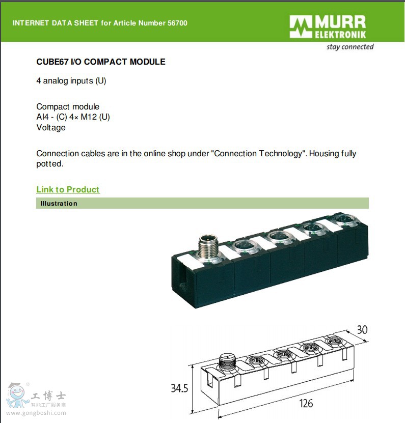 全新原裝德國(guó)murr穆爾現(xiàn)場(chǎng)總線模塊56700 cube67 4 analog inputs