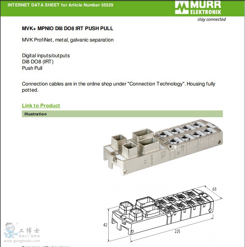 現(xiàn)貨原裝德國MURR穆爾55529MVK金屬M(fèi)VK DI8 DO8 ProfiNet總線模塊