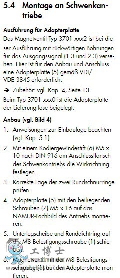 4.適配板(5)與附著螺釘(7)M5x16在發動機的NAMUR孔圖像.