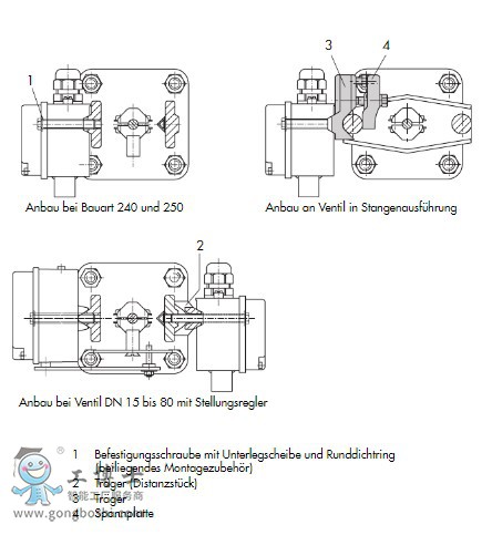 6.用M8固定螺釘(1)安裝在適配板上的電磁閥