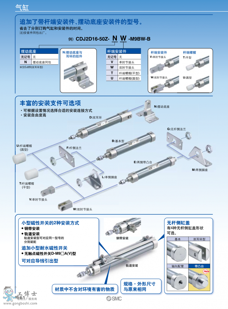 追加了帶桿端金屬安裝件、擺動金屬安裝件的型號(不必再另行配備)