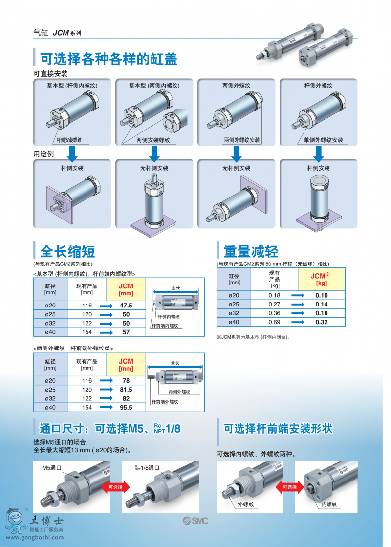 通口尺寸:可選擇M5, Rc, NPT1/8
