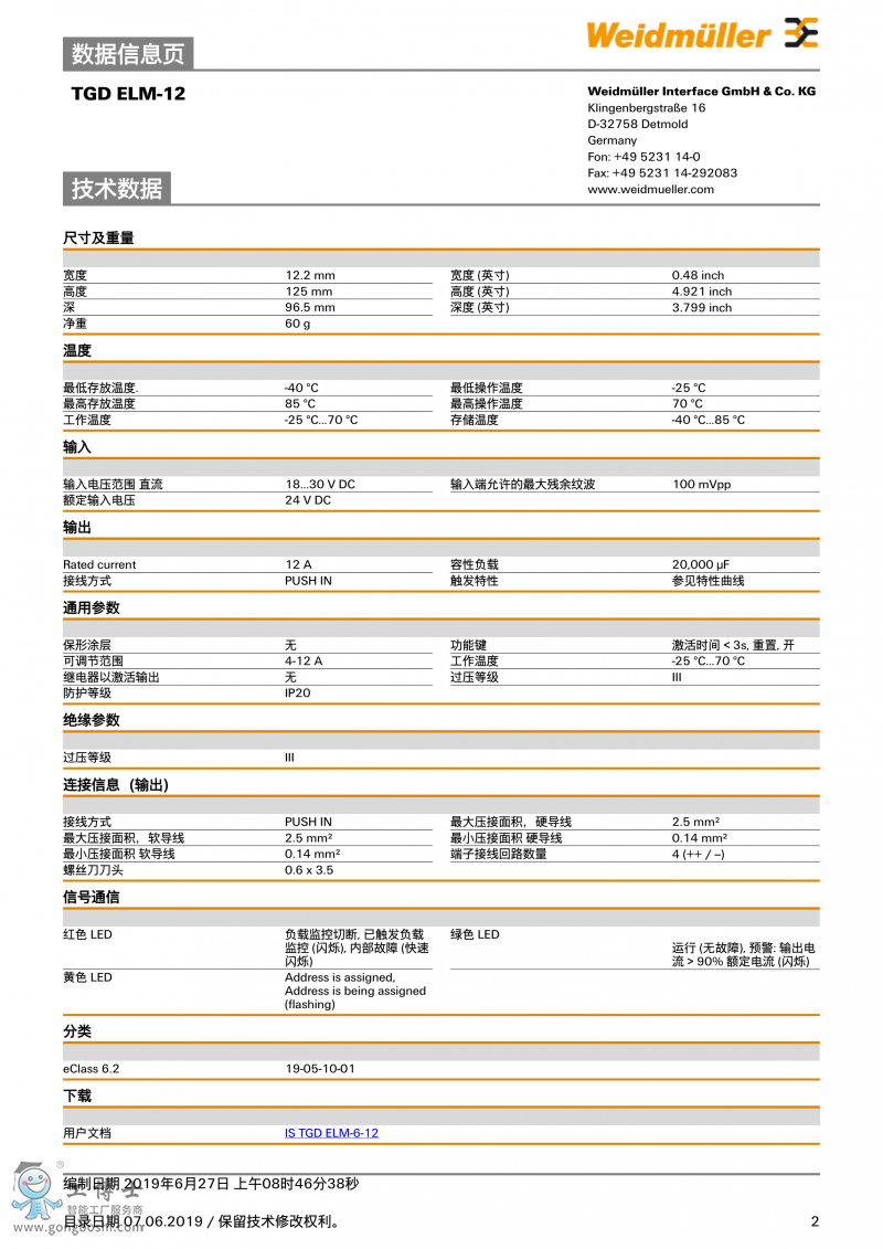 TGD ELM-12魏德米勒weidmuller maxGUARD分配器訂貨號2624990000 |