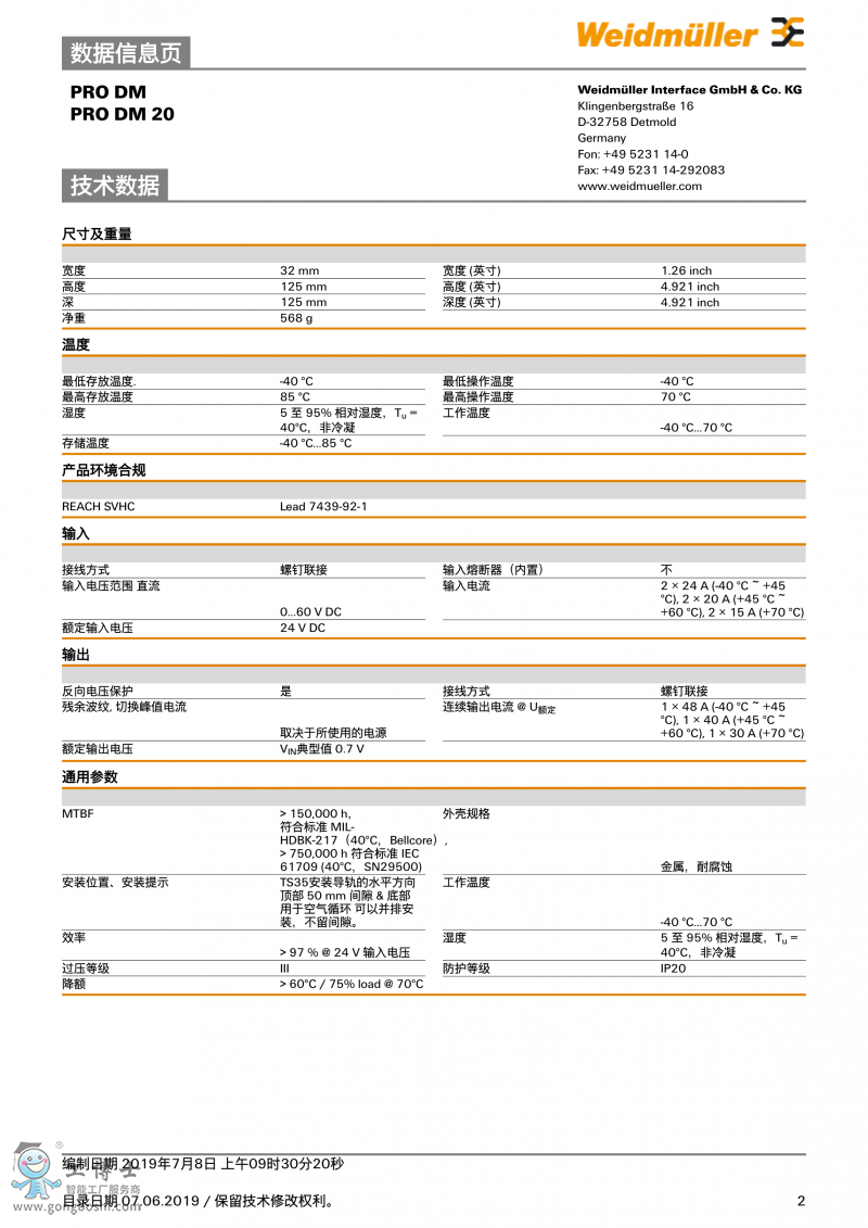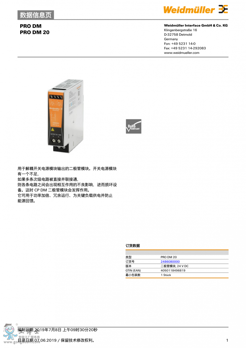 PRO DM 20魏德米勒weidmulle 二極管模塊 訂貨號2486080000 |