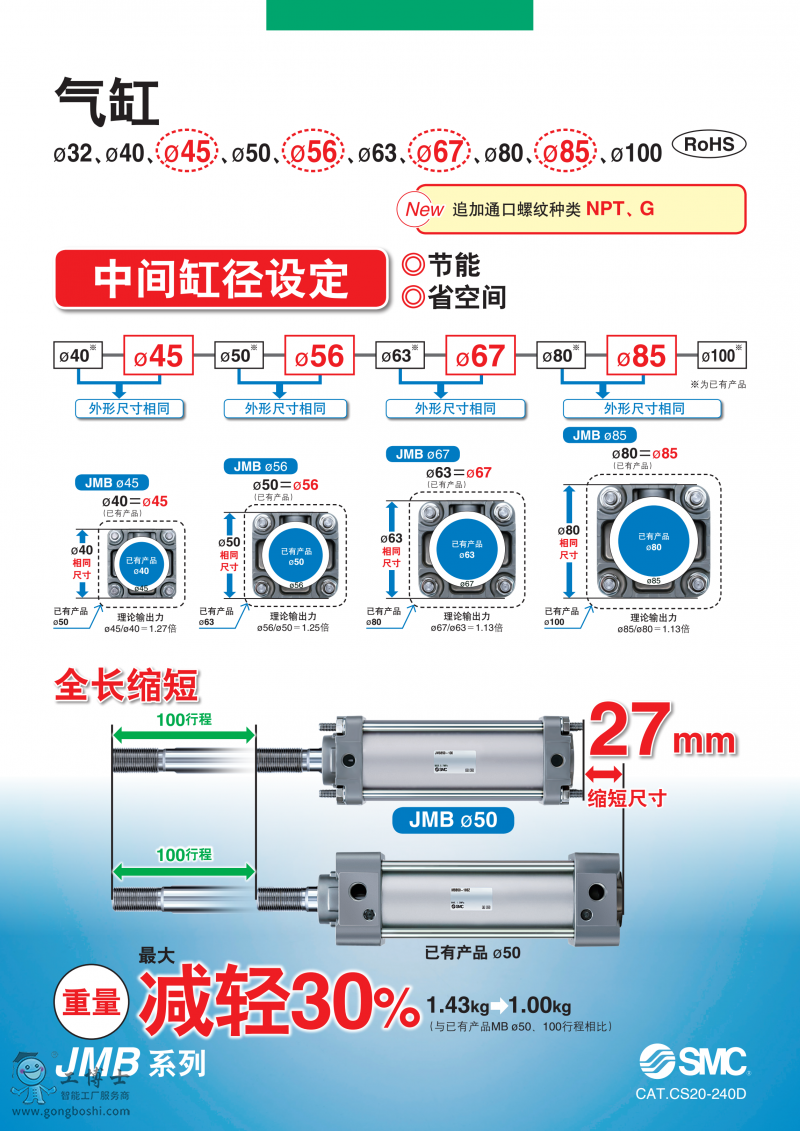 JMB(JMDB) SMC標準型氣缸(方形端蓋)