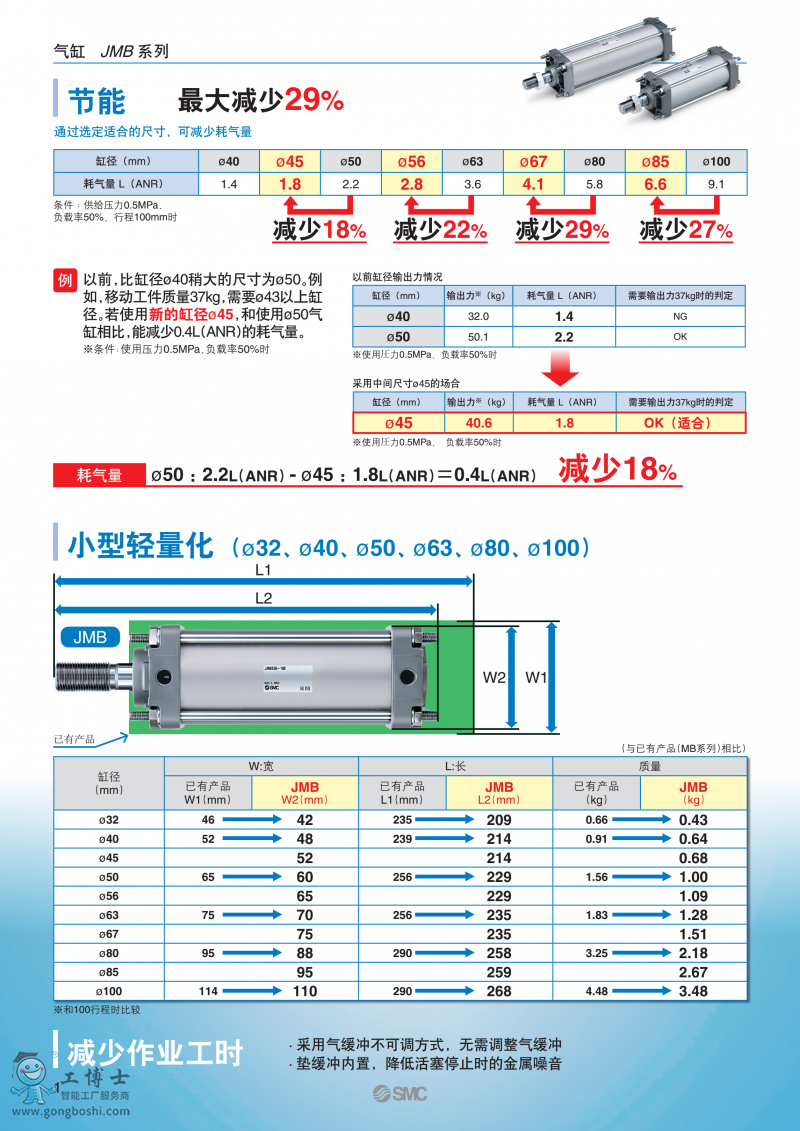 通過選擇合適的尺寸可減少空氣消耗量。