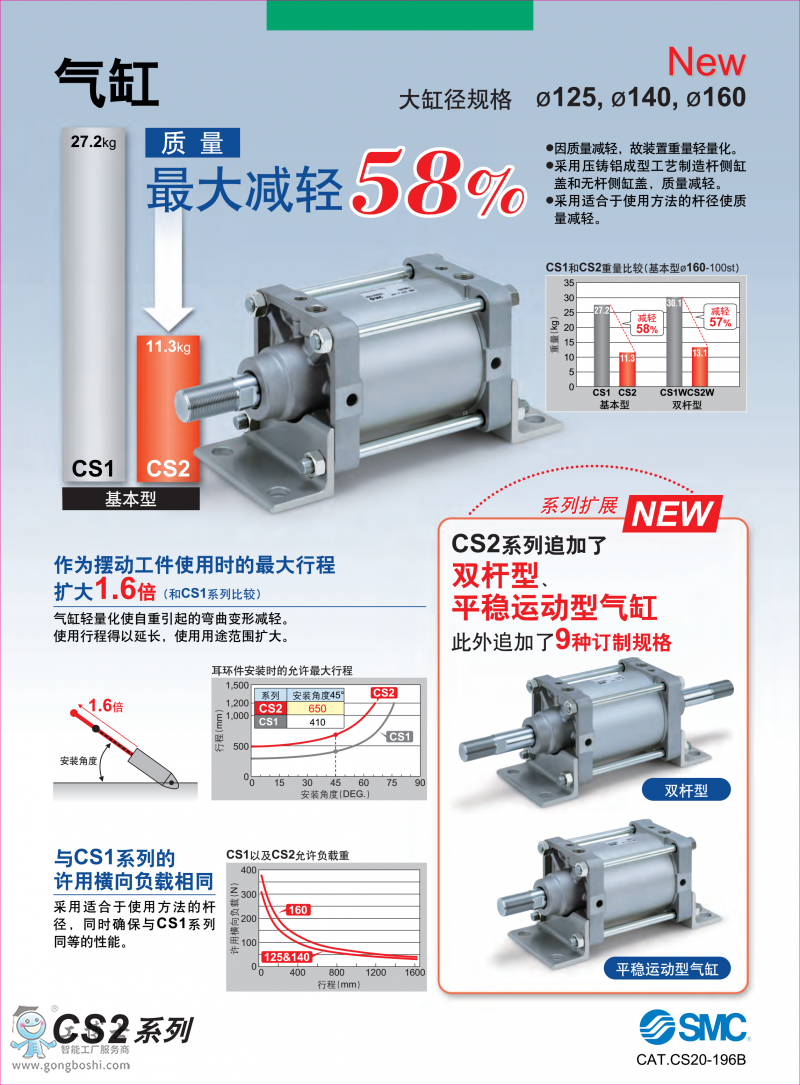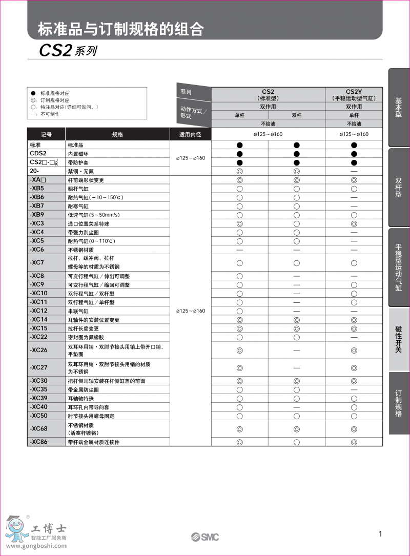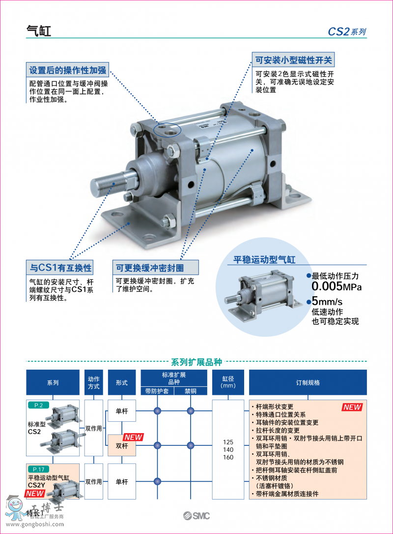 CS2/CDS2 SMC標準型氣缸(方形端蓋)